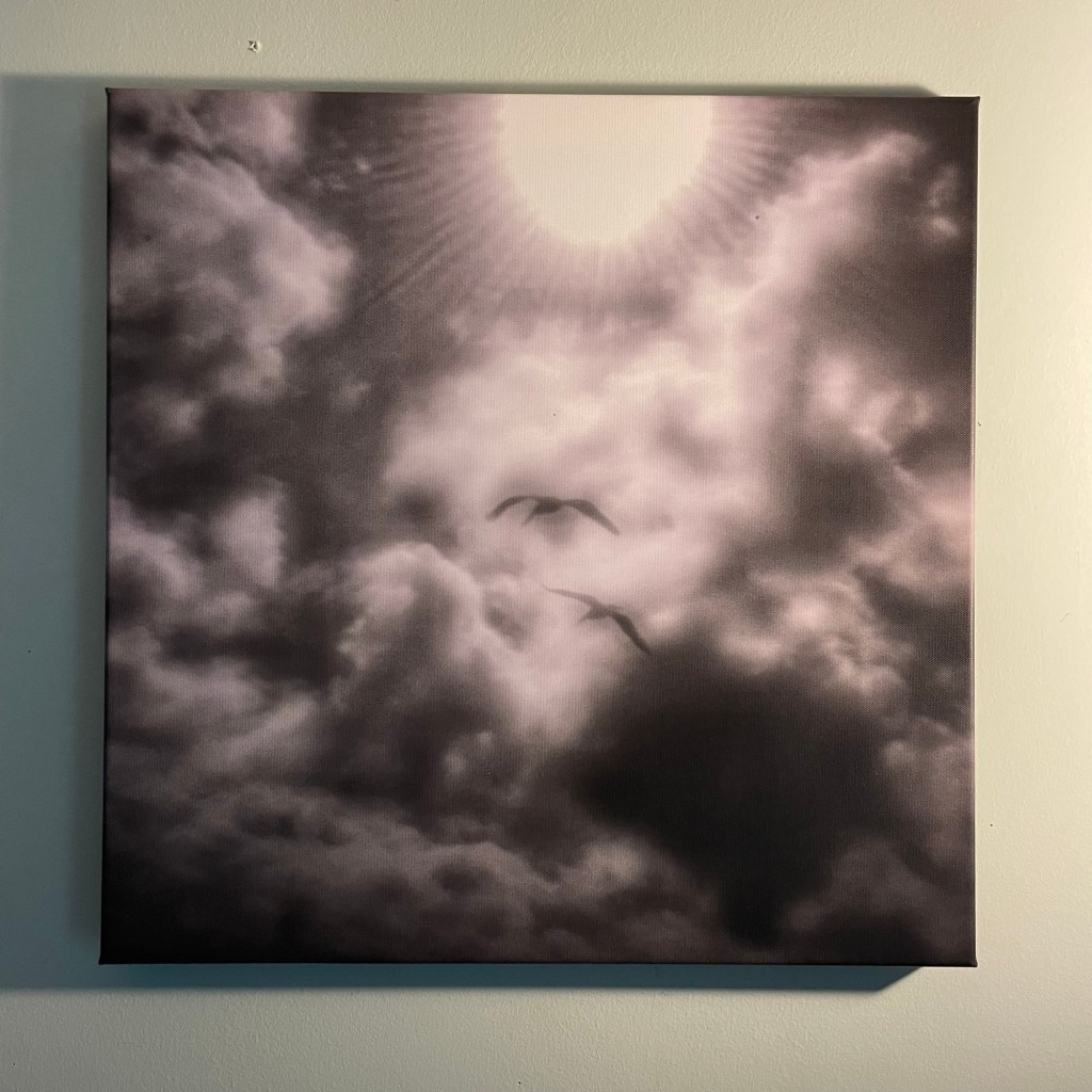 I have been skeptical of printing on canvas as it always seemed kind of gimmicky to me. I had a mind shift about that after seeing an exhibit by a local photographer who had used that format for a very moving documentary project. So I found a site that was running a discount offering, as they always do, and ordered a print that came yesterday. I expected to really like it or really hate it, and fortunately it is the former. It is 20×20.