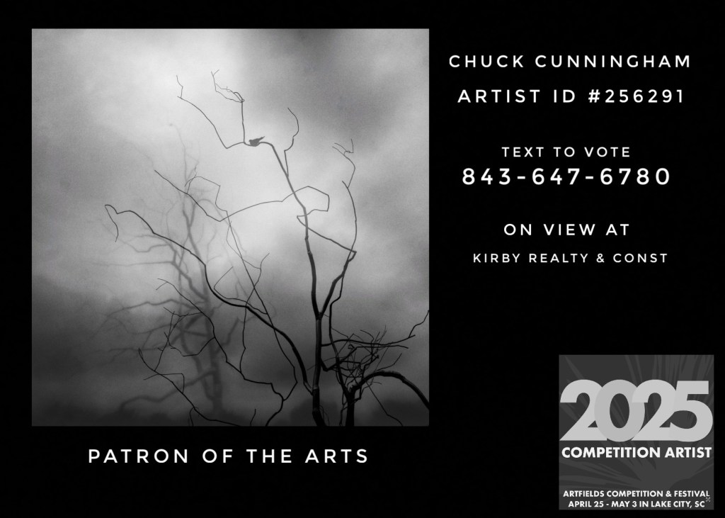 I received my contract for the ArtFields art festival that happens in Lake City, SC, from April 25-May 3rd. It is billed as a competition and arts festival, and you are encouraged to prepare promotional materials, preferably a two sided card no larger than 5×7, that contains certain information that visitors can use to vote on your particular piece of art. Here is what I have tentatively prepared for that purpose.
