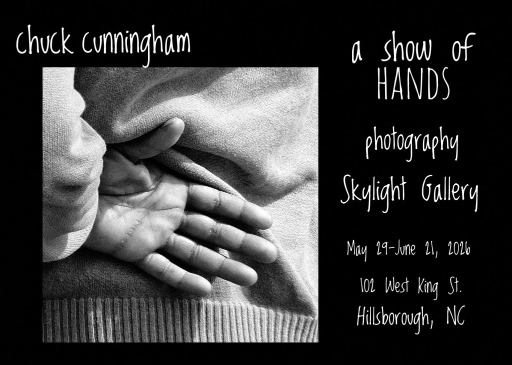 It has been some time since I posted here, almost six weeks? Anyway, I am happy to announce that I will be part of a two person photography exhibition at Skylight Gallery in Hillsborough, NC, starting May 29, with an opening reception from 6-9:00 PM, the exhibition running through June 21. I will be sharing space with photographer Catharine Carter, whose work I admire very much.